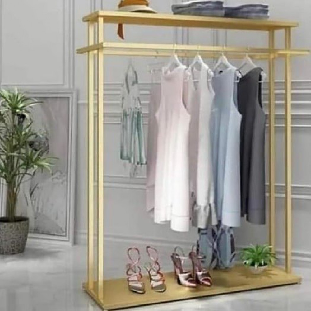 علاقة ملابس مع رف احذية ذهبي متجر يوم بيوم